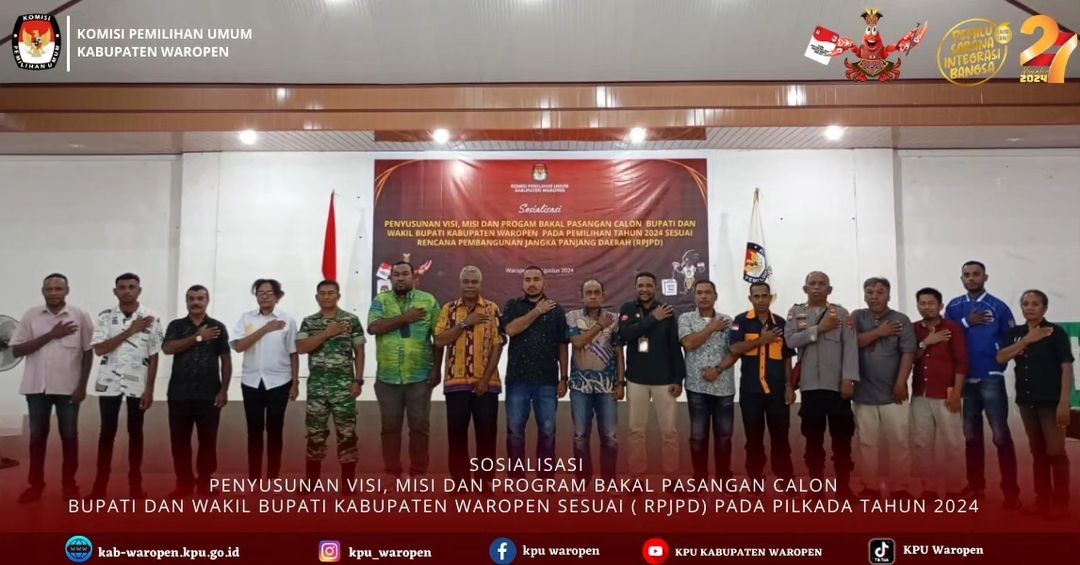 Sosialisasi Penyusunan Visi, Misi dan Program Bakal Pasangan Calon Bupati dan Wakil Bupati Kabupaten Waropen Sesuai RPJDP pada Pilkada 2024