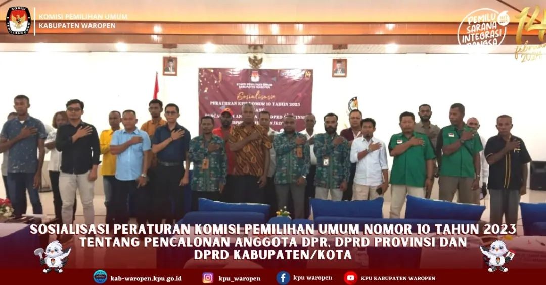#TemanPemilih, KPU Kabupaten Waropen melaksanakan Sosialisasi Peraturan Komisi Pemilihan Umum Nomor 10 tahun 2023 tentang, Pencalonan Anggota Dewan Perwakilan Rakyat, Dewan Perwakilan Rakyat Daerah Provinsi dan Dewan Perwakilan Rakyat Daerah Kabupaten/Kota.