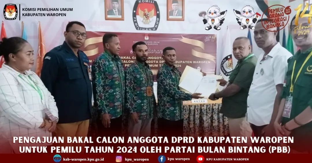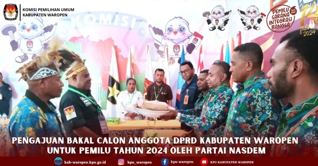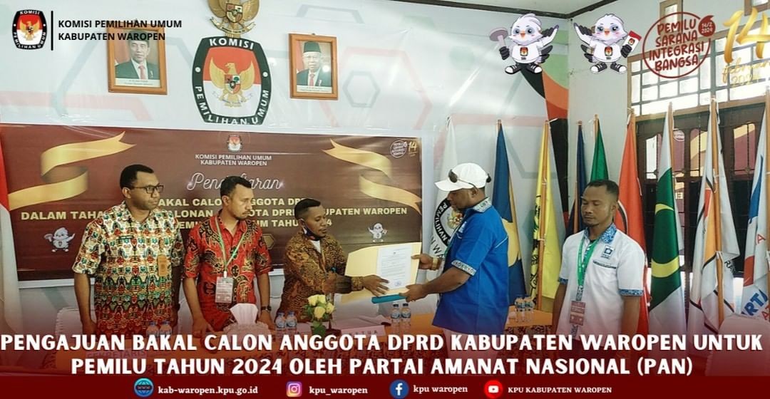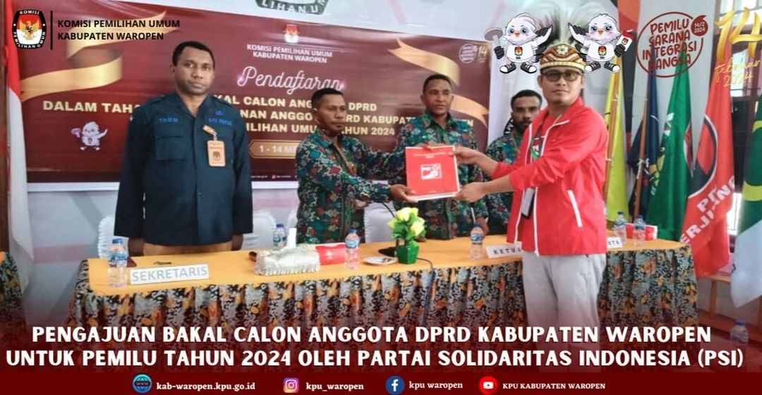 #TemanPemilih,Partai DEMOKRAT mengajukan Bakal Calon Anggota DPRD Kabupaten Waropen, Sabtu 13 Mei 2023 pukul 09:52 WIT. Dipimpin langsung oleh Ketua Partai, Sekretaris dan Petugas Penghubung/L.O, di ruang Rapat menyerahkan Dokumen Pencalonan.