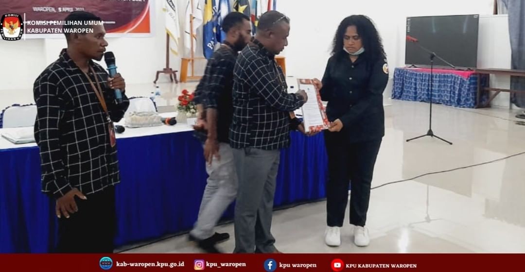 Dalam rapat pleno rekapitulasi Daftar Pemilih Sementara (DPS) Kabupaten Waropen, setiap Panitia Pemilihan Distrik (PPD) dari 11 distrik membacakan hasil pleno yang telah dilaksanakan pada tingkat kecamatan. Pada saat pembacaan hasil pleno tingkat kecamatan, Bawaslu dan Partai Politik diberikan kesempatan untuk memberikan saran dan masukan terkait hasil pleno yang dibacakan. Kemudian hasil pleno tersebut disahkan oleh Ketua KPU Kab. Waropen.