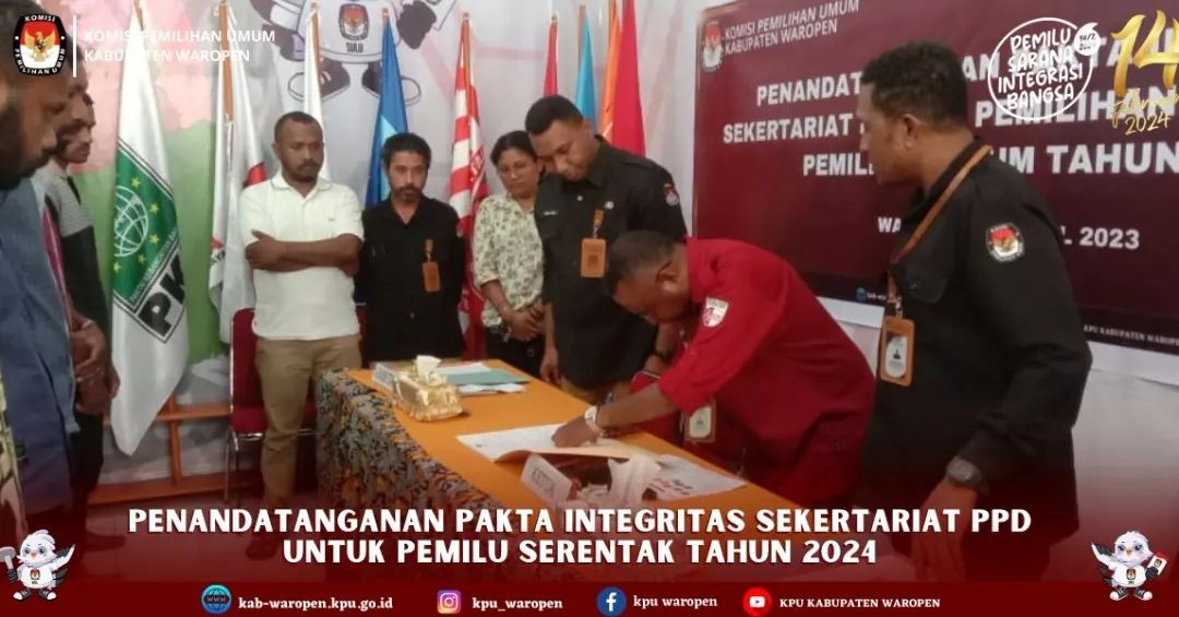 #TemanPemilih, Kabupaten Waropen Papua, 5 April 2023 - Rapat pleno rekapitulasi Daftar Pemilih Sementara (DPS) Kabupaten Waropen digelar, bertempat di Aula kantor Klasis GKI Waropen, dihadiri oleh berbagai pihak diantaranya Ketua dan Komisioner KPU Kab. Waropen, Sekretaris dan Sekretariat KPU Kab. Waropen, Asisten III Bupati, Bawaslu Kab. Waropen, Kepala Dukcapil dan Kepala Kesbangpol Kab. Waropen, Danramil Waropen Bawah, Kapolres Waropen, Kepala Satpol PP Waropen, Kepala Distrik Kirihi,Panitia Pemilihan Distrik se Kabupaten Waropen, Panwas Distrik Se-Kabupaten Waropen dan 18 partai politik peserta pemilu tahun 2024.