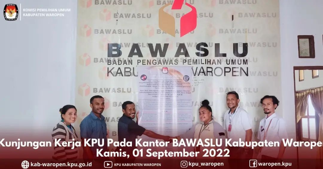 Mengawali hari pertama dibulan yang baru, 01 September 2022 Pada pukul 15:45-16:30 WIT , KPU Kabupaten Waropen, melakukan Kunjungan Kerja pada kantor BAWASLU Kabupaten Waropen.