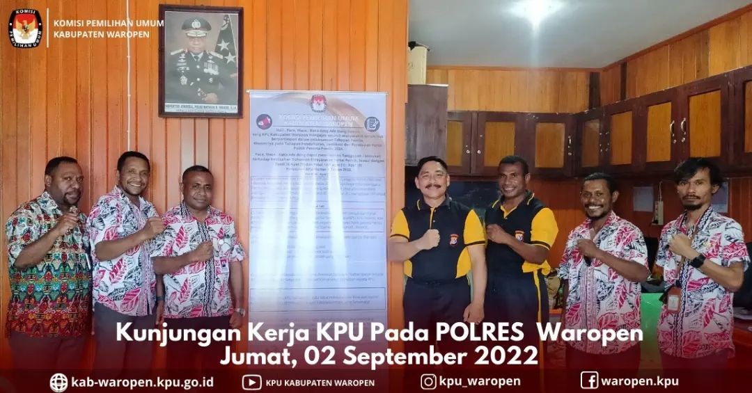 Kunjungan Kerja ini dipimpin oleh Bapak Silas Buinei Anggota KPU Divisi Teknis Penyelenggara Pemilu, Partisipasi dan Hubungan Masyarakat, didampingi oleh Bapak Jhon Soendemi Anggota KPU Divisi Sosialisasi, Pendidikan Pemilh, Partisipasi Masyarakat dan Sumber Daya Manusia, Bapak Yan Duwiri Anggota KPU Divisi Perencanaan, Data dan Informasi dan juga Bapak Horison Thomas Ick selaku Kasubag Teknis beserta 2 staf pelaksana.