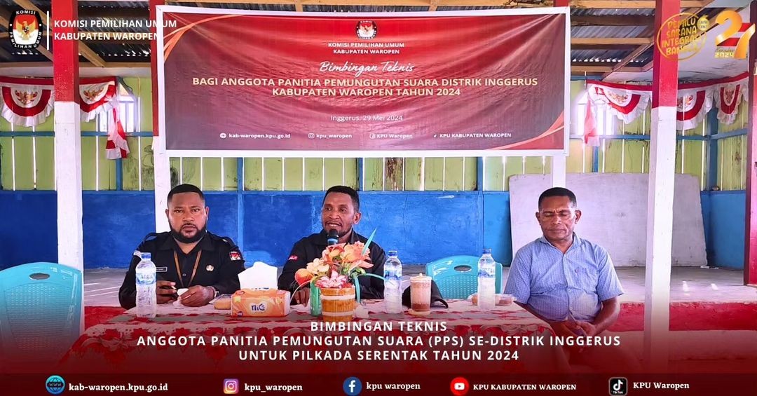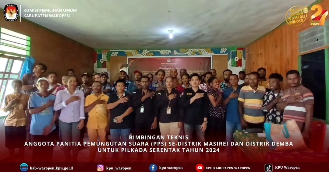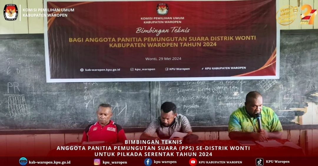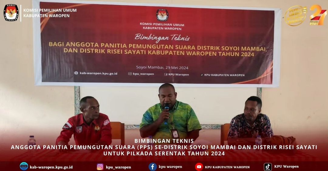 #TemanPemilih, KPU Kabupaten Waropen Menggelar Bimbingan Teknis kepada Anggota Panitia Pemungutan Suara (PPS) Se-Distrik Soyoi Mambai dan Distrik Risei Sayati, Rabu, 29 Mei 2024.