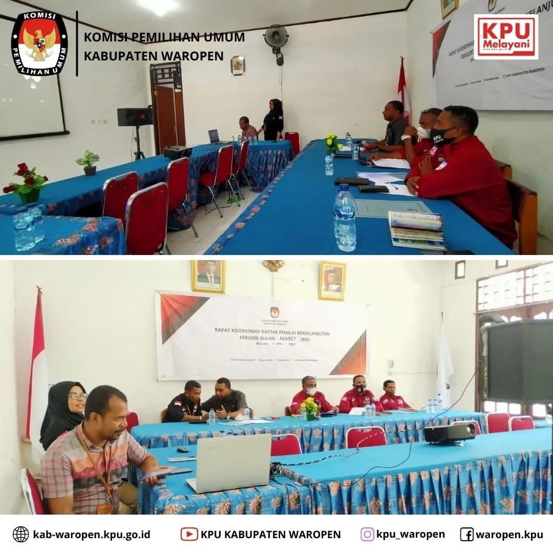 Pada hari ini senin 4 april 2022 , Komisi Pemilihan Umum Kabupaten Waropen melaksanakan Rapat Konsolidasi bersama Bawaslu, Pemda dan TNI/POLRI dalam rangka persiapan Pemilu / Pemilihan Serentak tahun 2024, Bertempat di Kantor KPU Kabupaten Waropen.