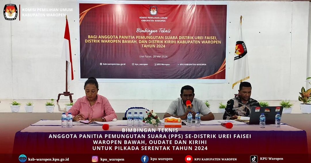 #TemanPemilih, KPU Kabupaten Waropen Menggelar Bimbingan Teknis kepada Anggota Panitia Pemungutan Suara (PPS) untuk 4 Distrik, yaitu Distrik Urei Faisei, distrik Waropen Bawah, Distrik Oudate dan Distrik Kirihi, Selasa, 28 Mei 2024.