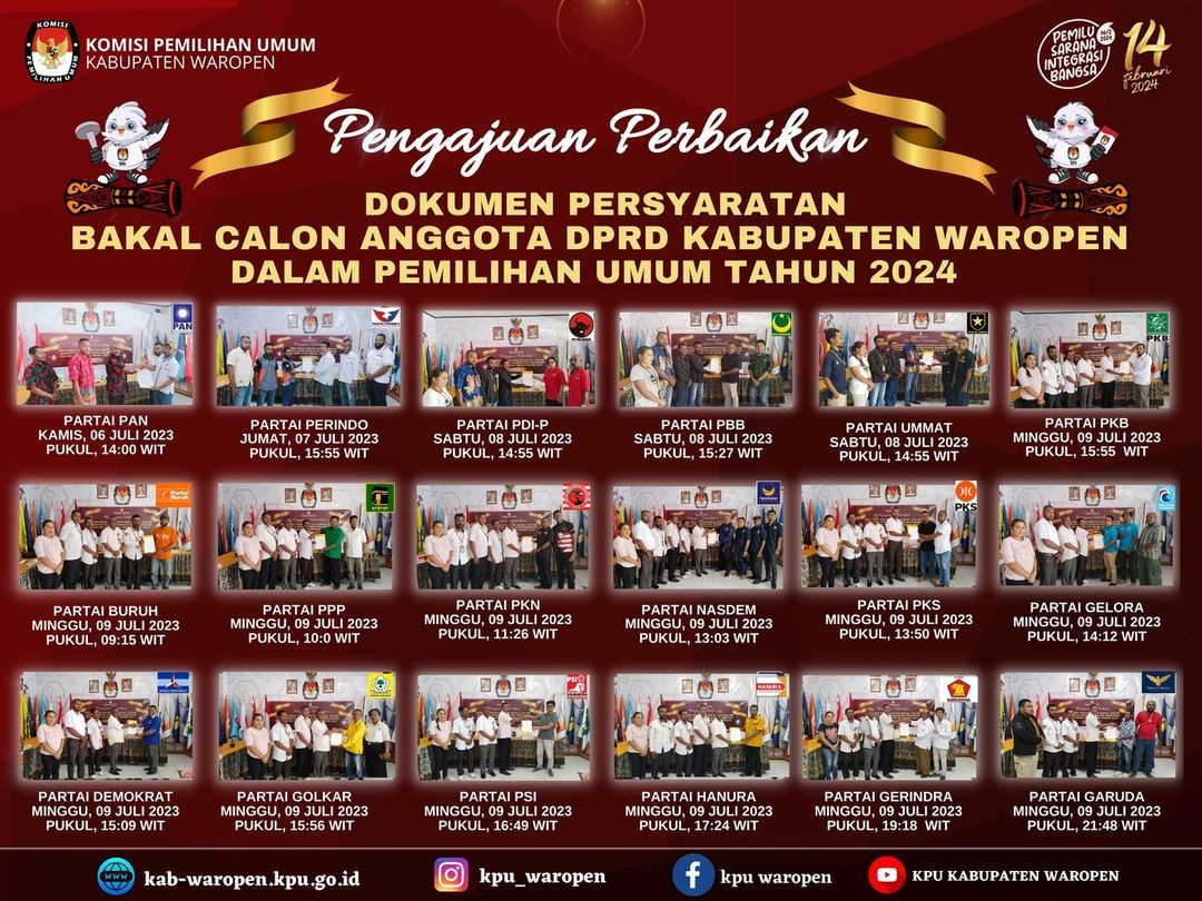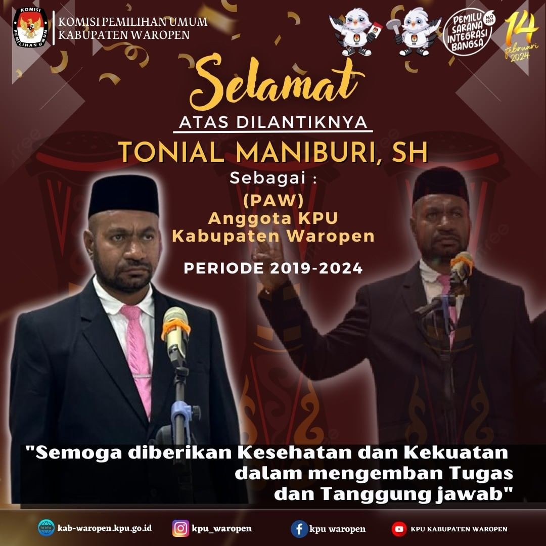 Untuk KPU Kabupaten Waropen, Semua penyelenggara di tingkat bawah telah dibentuk, dilantik dan Hak-Hak mereka telah di bayarkan sesuai dengan Petunjuk yang ada.