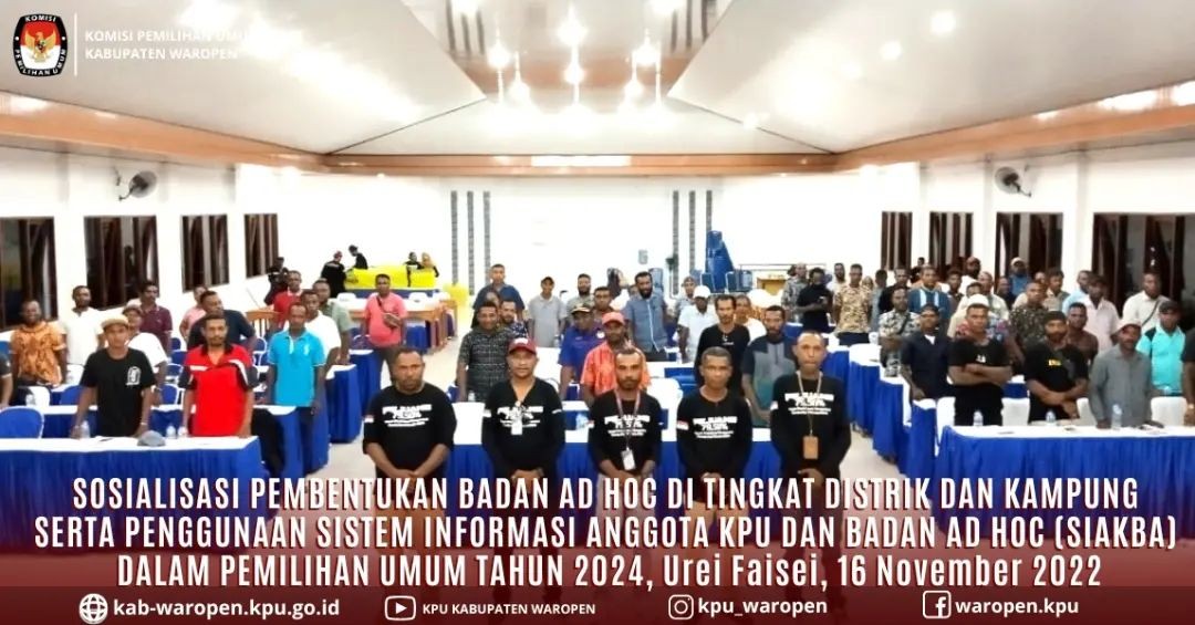 #TemanPemilih, Bertempat di Aula Lantai 2 Kantor Klasik GKI Waropen, KPU Kabupaten Waropen, Divisi Hukum dan SDM bersama Divisi Sokdikparmas Melaksanakan, Sosialisasi Pembentukan Badan AD HOC Di Tingkat Distrik